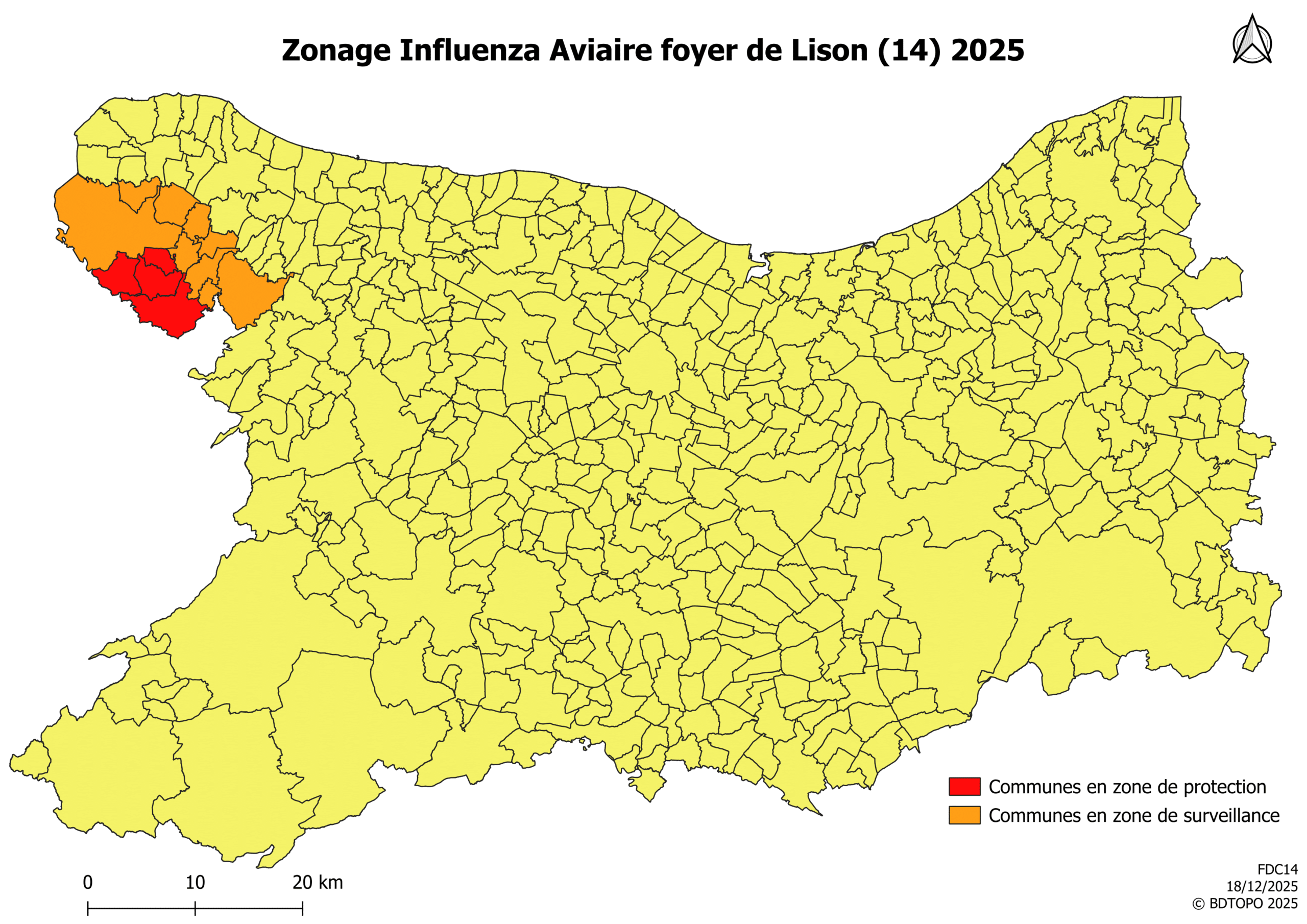 Un cas de grippe aviaire a été détecté le 12/12/2025 dans un élevage commercial près de Lison. Par conséquent, le préfet a pris un arrêté pour préciser les mesures concernant les activités cynégétiques dans les zones concernées. Il s’applique dès ce jour.